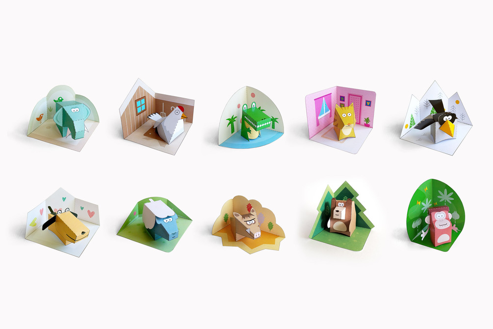 10 cute paper animals to cut, fold and glue/stick