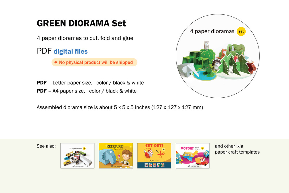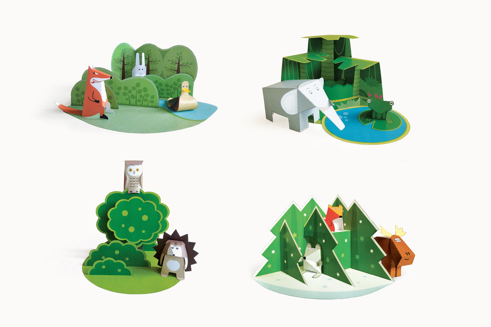 4 paper dioramas to cut, fold and glue/stick